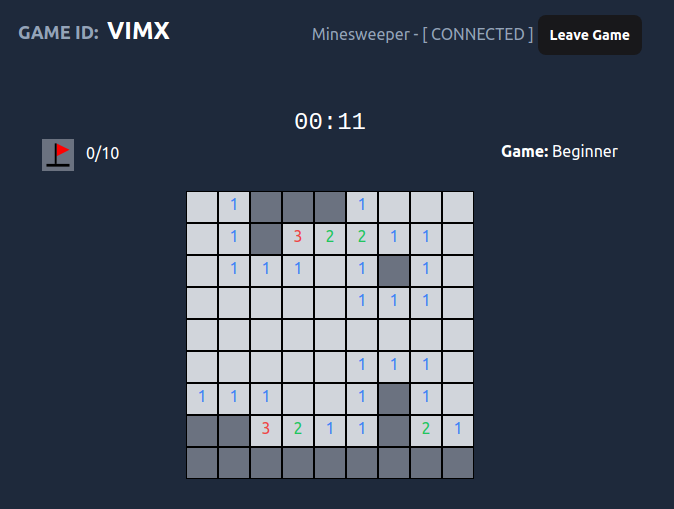 The only game I've made available so far is Minesweeper, which is notably a single-player game. However, I've incorporated multiplayer elements - the player who started the game is the "active" player, and everyone else is an "audience member". The active player can click on things, while the audience gets a live-updated view of the ongoing game.